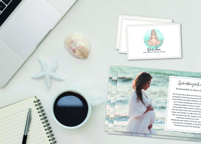Du möchtest ein tolles Design und treffende Texte? Gerne gestalte ich Deine Drucksachen wie Flyer, Doula-Mappen, Visitenkarten uvm. Mit Deinem Doula-Design, das sich durch alle Kommunikationsmittel zieht, erhöhst Du die Wiedererkennung und schaffst Kontinuität. Wenn Du vielleicht schon einige Werbematerialien hast, Dein Auftritt aber nicht (mehr) das symbolisiert, wofür Du stehst, können wir das Erscheinungsbild verjüngen – die positiven Elemente bewahrend und zukunftsorientiert fortführend.